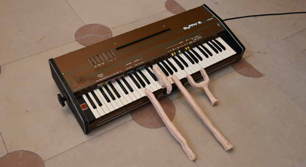 My devices seek to bring into existence the relationship between a sensitive and emotional world and electronic and mechanical objects that produce sounds. I work with salvaged, found, abandoned, broken synthesizers, which I transform into a sculptural language in relation to space. I seek out new sounds, playing with them and emphasizing their weakness in an aesthetic reminiscent of electronic DIY projects. I leave the process of creation, repair, and loss of the original function visible.